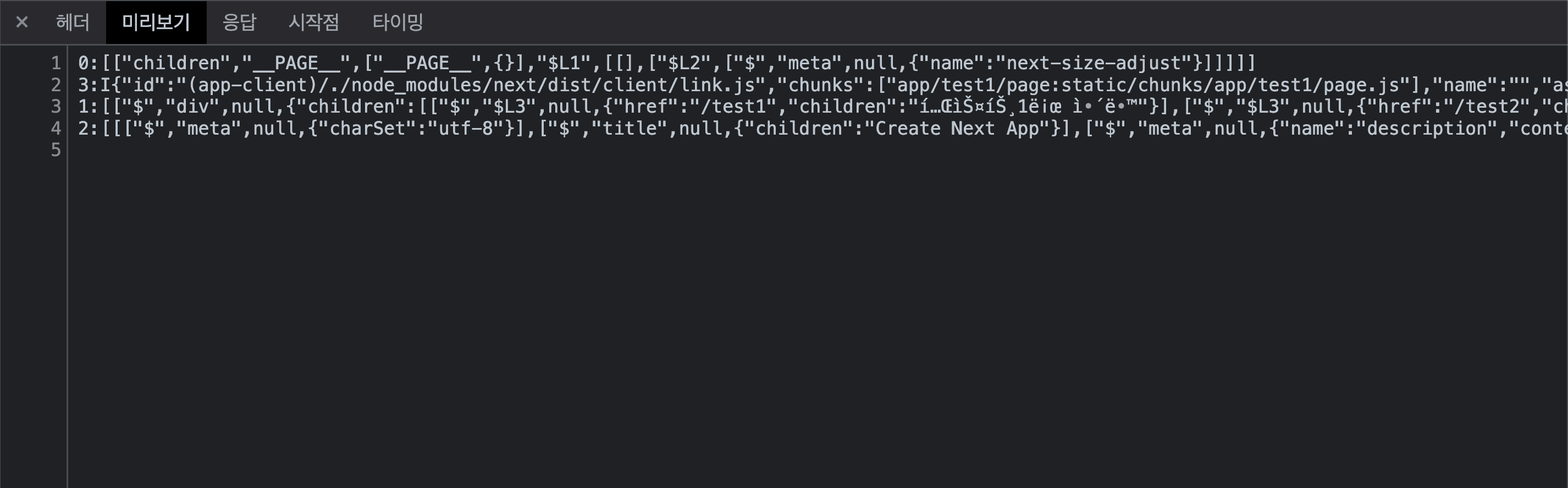 - SSR은 초기로드시에는 html을 전달하고, 모든 자바스크립트 파일을 전송합니다. 그리고 이후 라우팅이 이루어졌을대 SSR이 적용되어있는페이지라면 서버에서 데이터를 json형태로 가져와 적용합니다. 하지만 RSC는 초기로드와 관련없이 컴포넌트가 렌더링될때 데이터를 앞서 언급한 유사 json형태로 가져오며, 이때 자바스크립트 파일은 받아오지 않습니다.